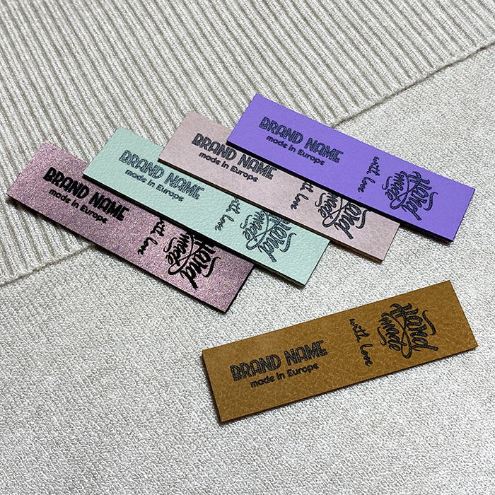 Personalizovaný štítek EP-M167 z umělé kůže na oděvy, tašky, boty a různé oděvní doplňky.